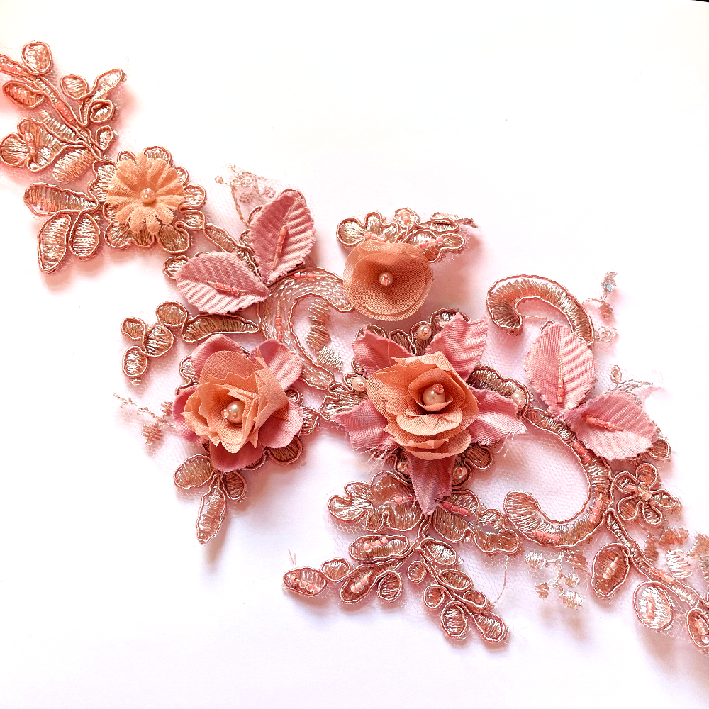 Feine Spitzenapplikation aus exklusivem Garn mit Perlen und Blumen.